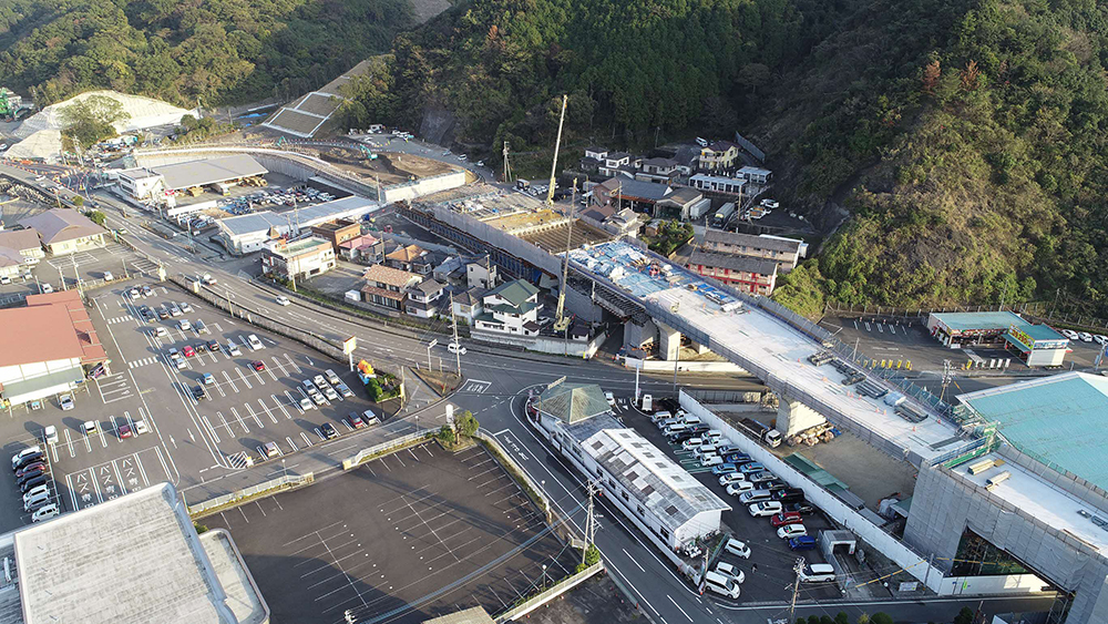 G1の固定支保工/G6の国道324号交差部はトラス型枠支保工を採用した(写真=*)