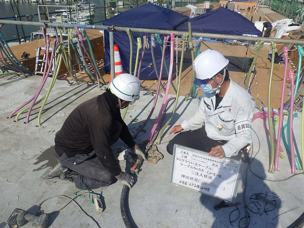 G5でのグラウト充填確認作業とG6でのグラウト充填作業