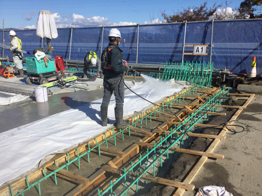 DAK式壁高欄の設置と設置完了後