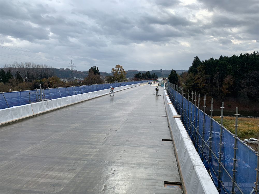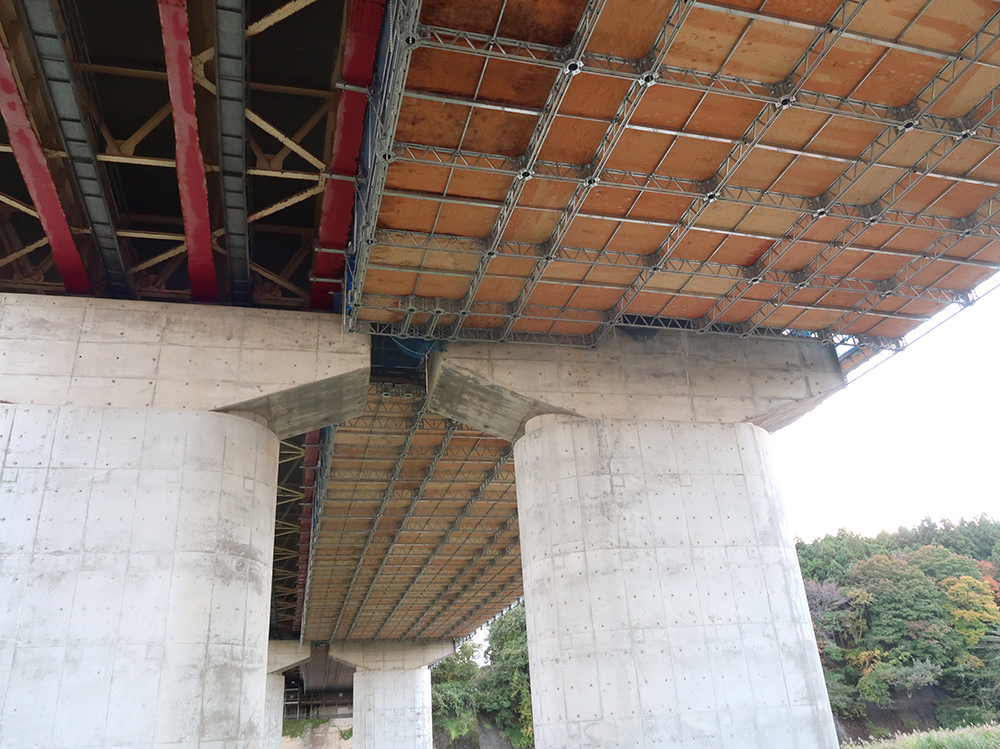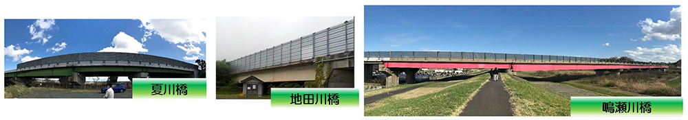 本工事では、磐井川橋と同橋に接続する磐井川高架橋で耐震補強工も実施する。内容は、支承取替が24基、P2橋脚(上下線各1橋脚)のRC巻き立て、P3橋脚(同)の炭素繊維巻き立て、落橋防止装置の設置などとなっている。また、本工事は契約継続方式で発注されており、夏川橋(橋長144.0m(上り線)、141.0m(下り線)、鋼2+3径間連続鈑桁橋)地田川橋(橋長35.0m、鋼単純鈑桁橋)の上下線、鳴瀬川橋(橋長404.0m、鋼3+3径間連続箱桁橋)の上下線の床版取替工事の詳細設計をあわせて実施し、中間技術検査合格後、順次3橋の工事契約を行う。夏川橋と地田川橋の上り線は2022年春施工、下り線は同年秋施工、鳴瀬川橋は2023年に着手し、2024年に完了する予定だ。