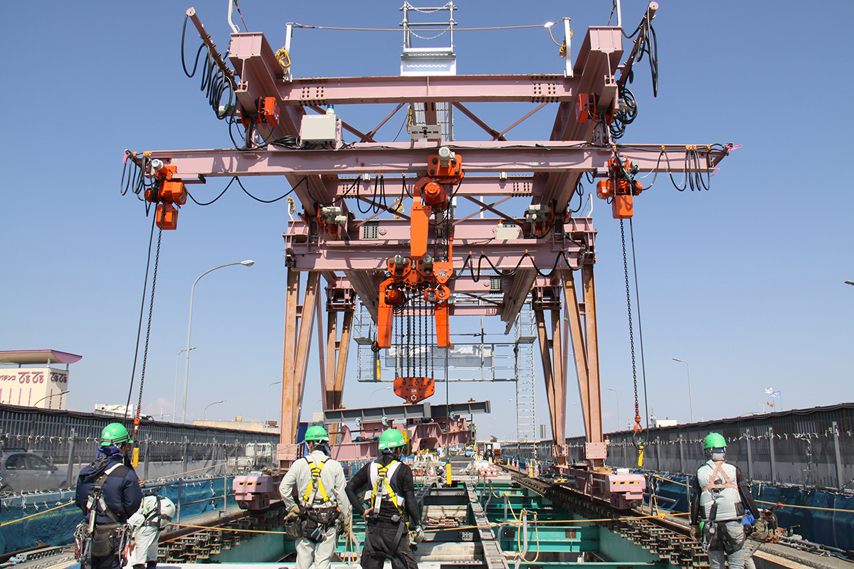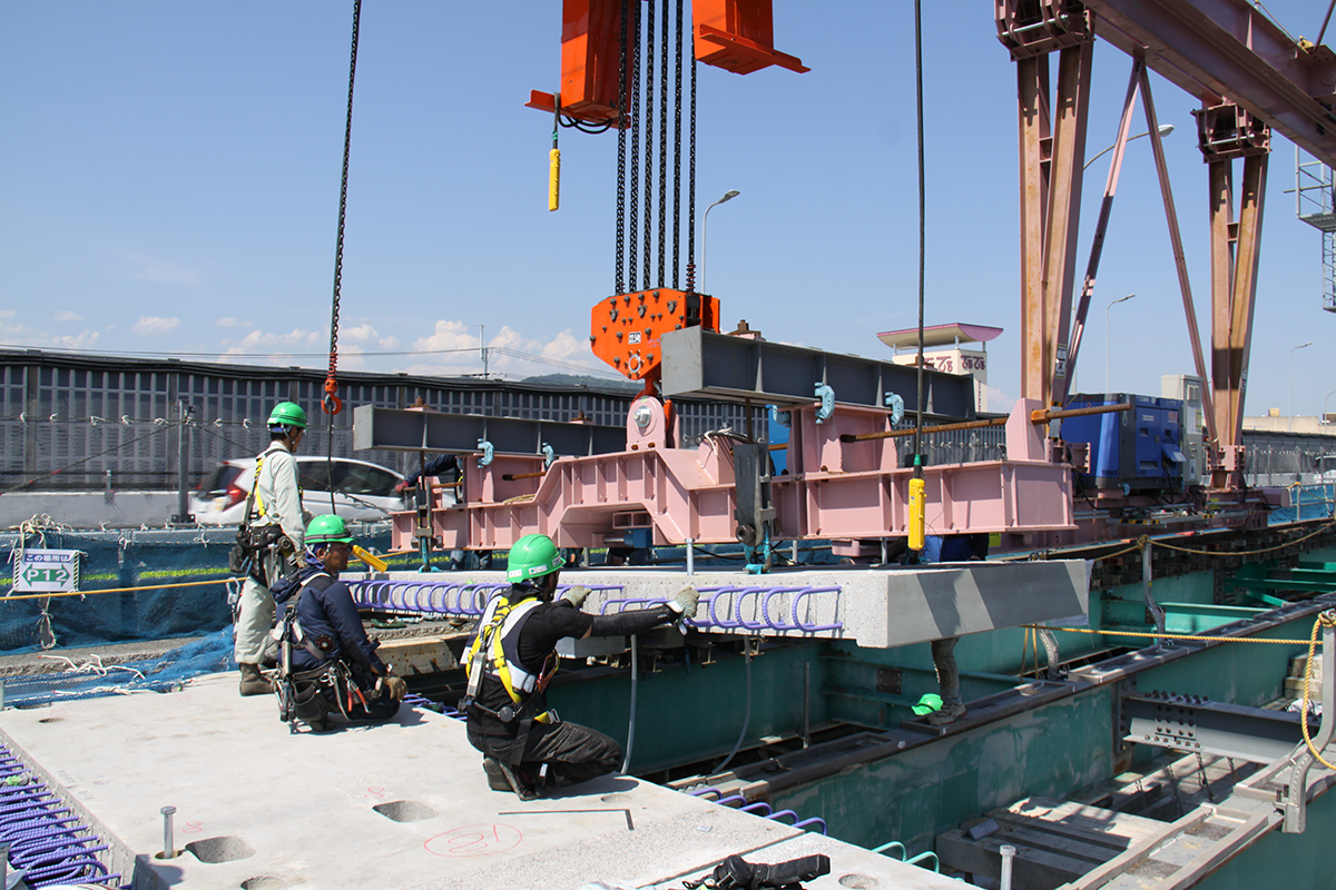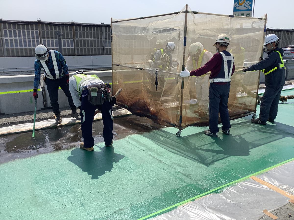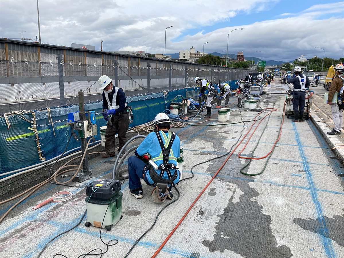 元請は横河ブリッジ・三井住友建設・IHIインフラシステム・奥村組・横河NSエンジニアリングJV。既設床版撤去・PCa床版設置の一次下請は松和工業、成和工業、汐義建設工事、コンクリートコーリング、鎌田メンテナンス、吉川建設工事 。