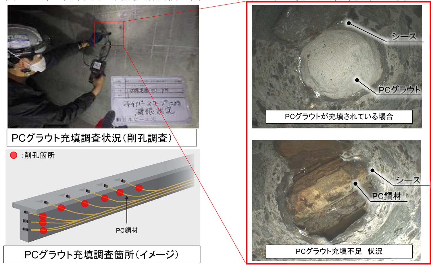 PC鋼材にも損傷 調査した2,204箇所中274箇所でグラウト充填不足