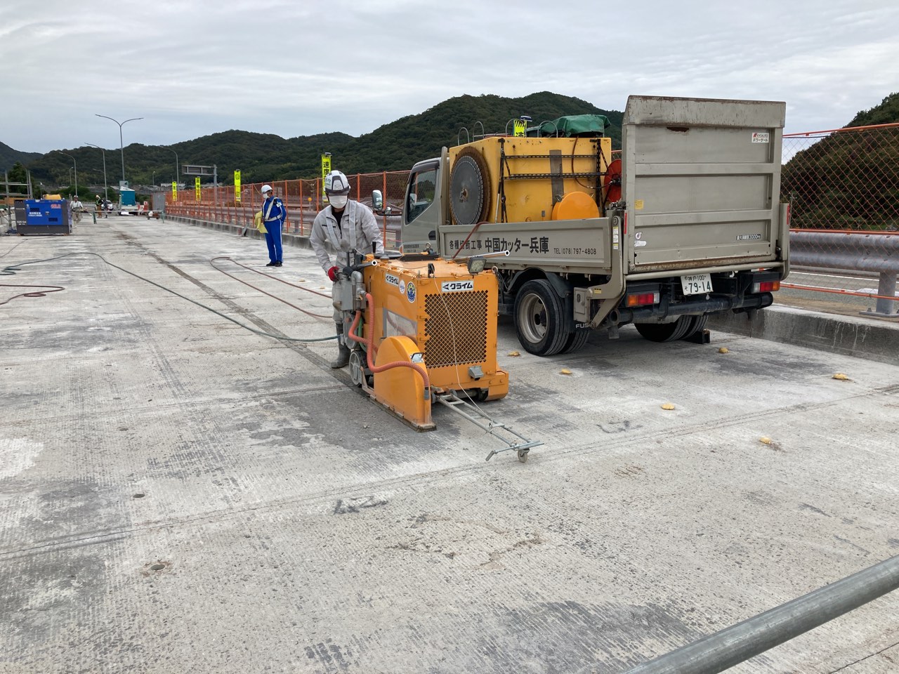 その後、アスファルトシート系の床版防水工を施工(床版防水工は第4橋の一部も施工する)し、舗装は改質アスファルトⅡ型を1層(厚さ50mm)敷設して完了する。