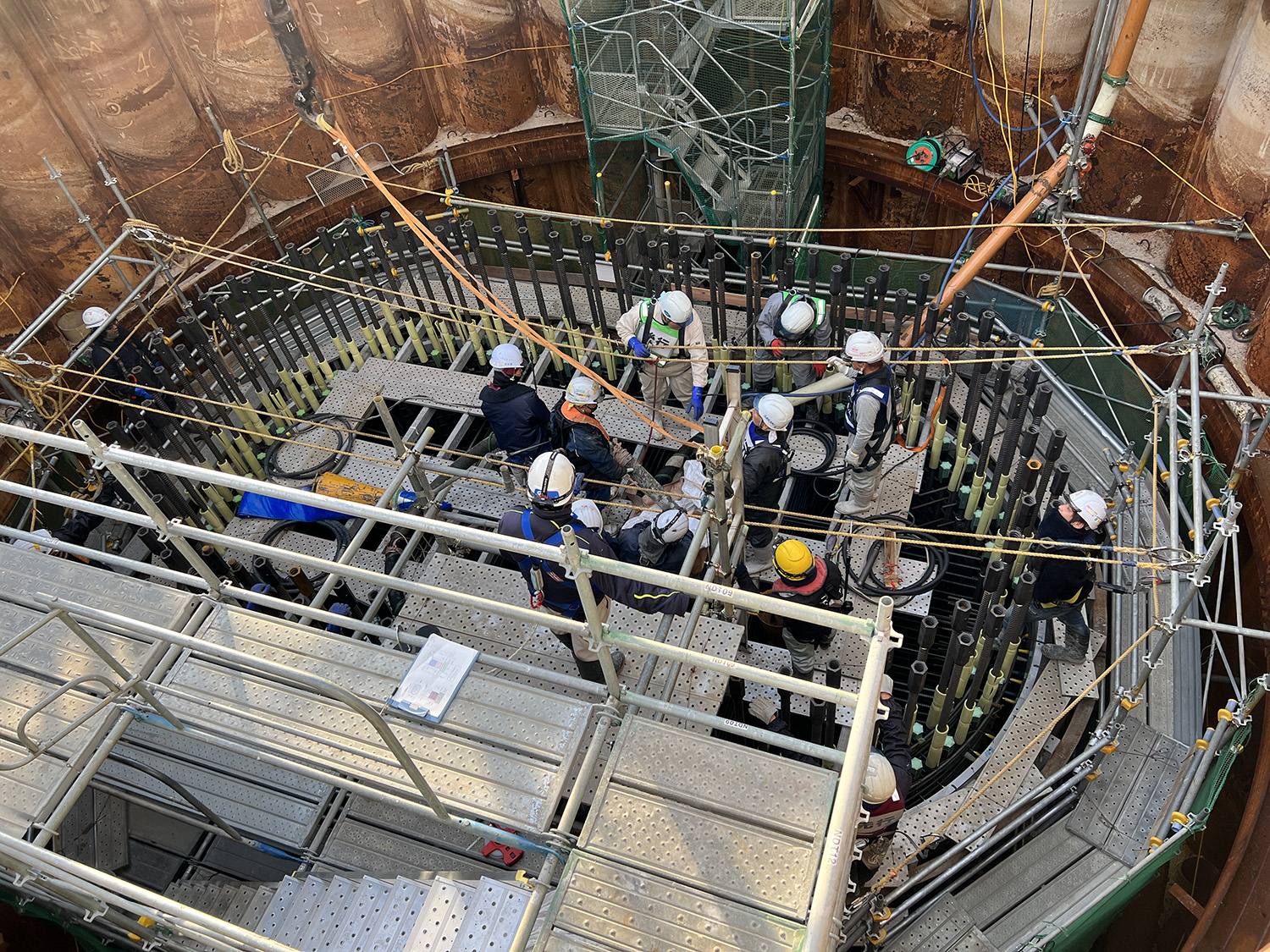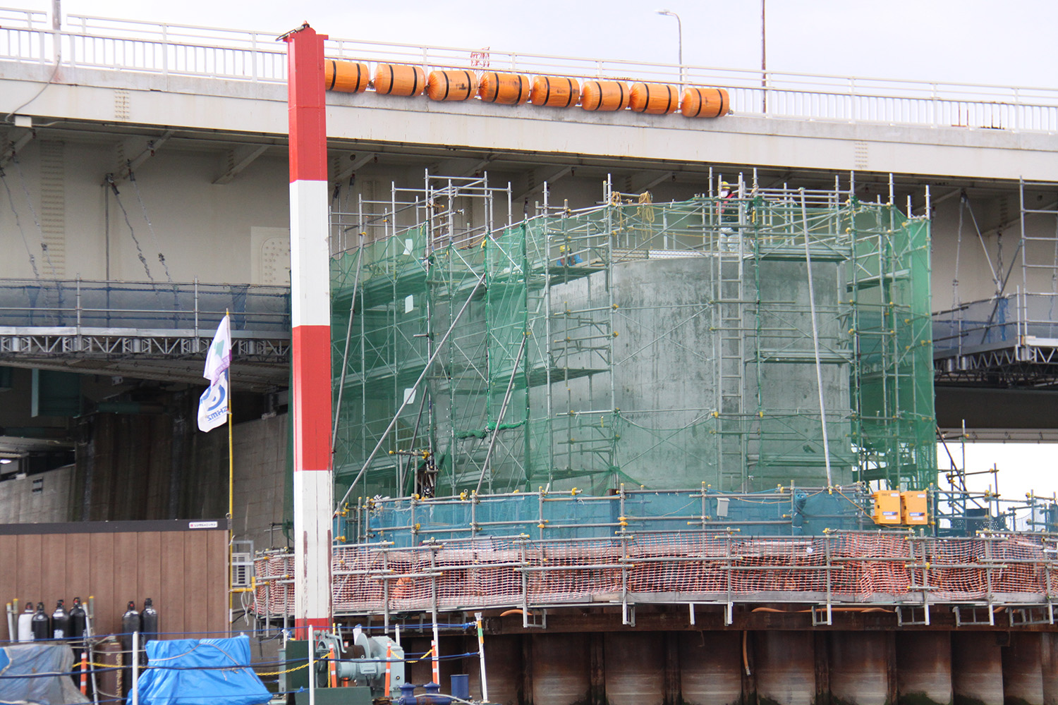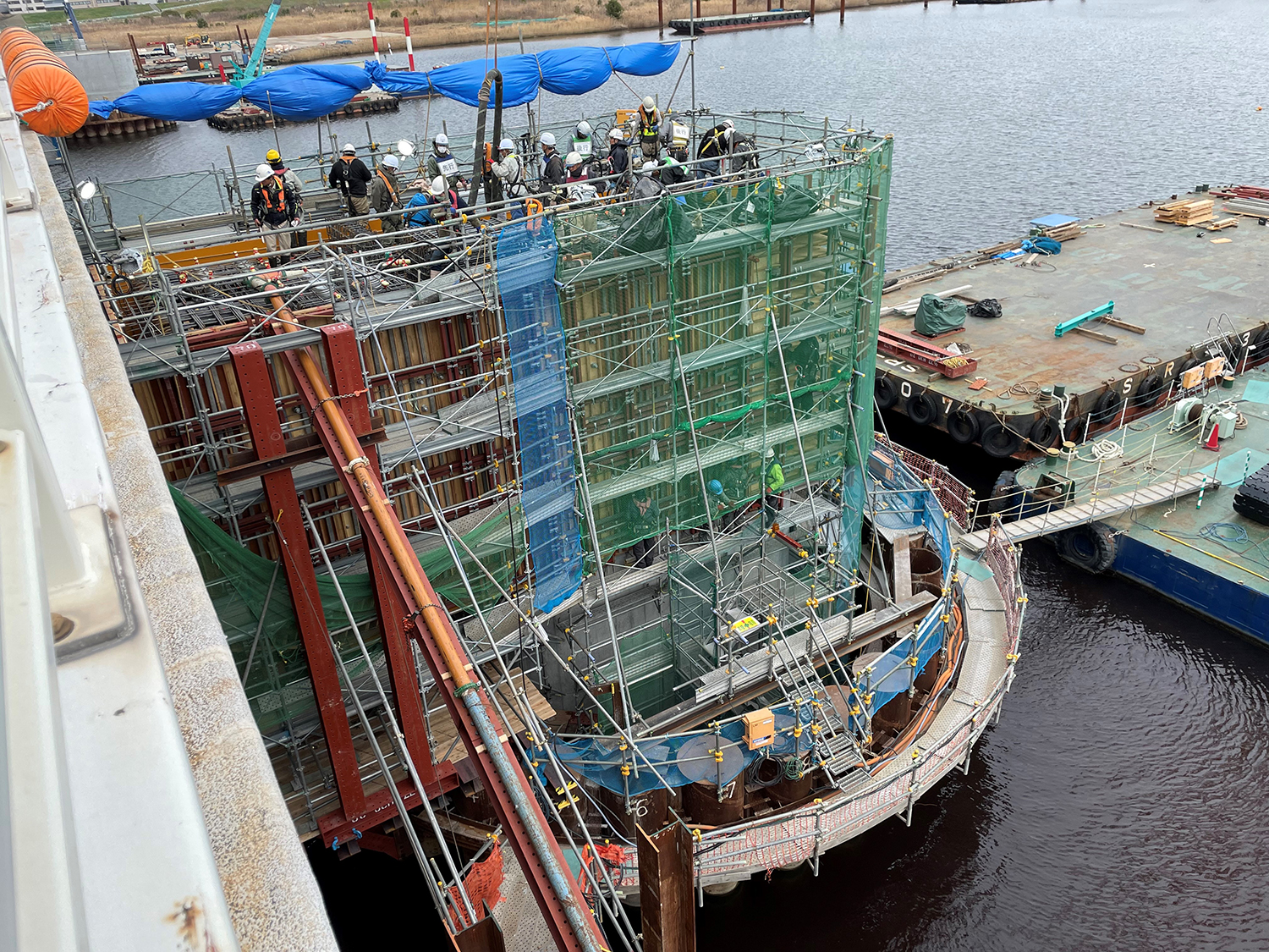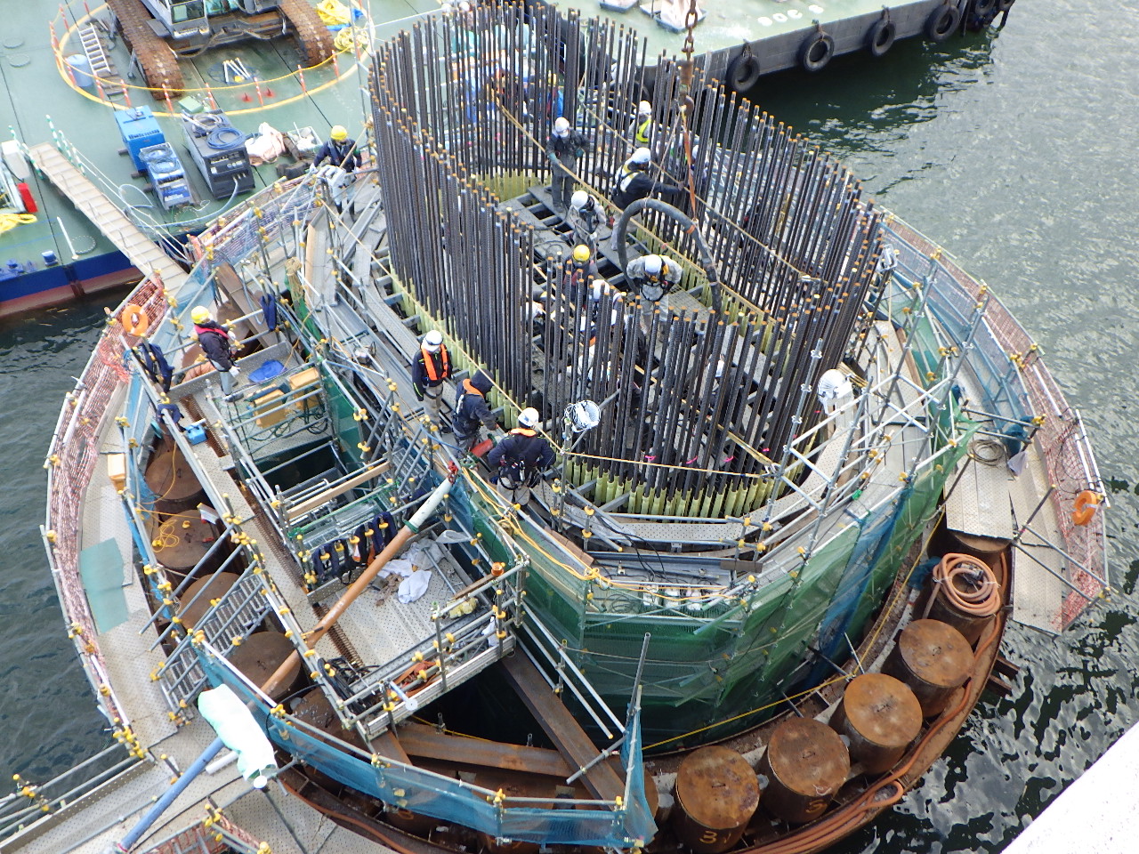 元請は清水建設・東亜建設工業・大豊建設JV。一次下請はヤマト工業(鋼管矢板打設)、きんそく(基準点・水準点測量)など、平野クレーン工業(相番クレーン揚重作業)。主要二次下請は、吉野建設、栄伸海事工業(水上クレーン揚重作業)、近畿生コンクリート圧送、泉北ニシイ(コンクリート圧送工)、谷口興業(鳶工)、サカキ工業、平尾工業(いずれも土工)、辻本建設(鉄筋工)。