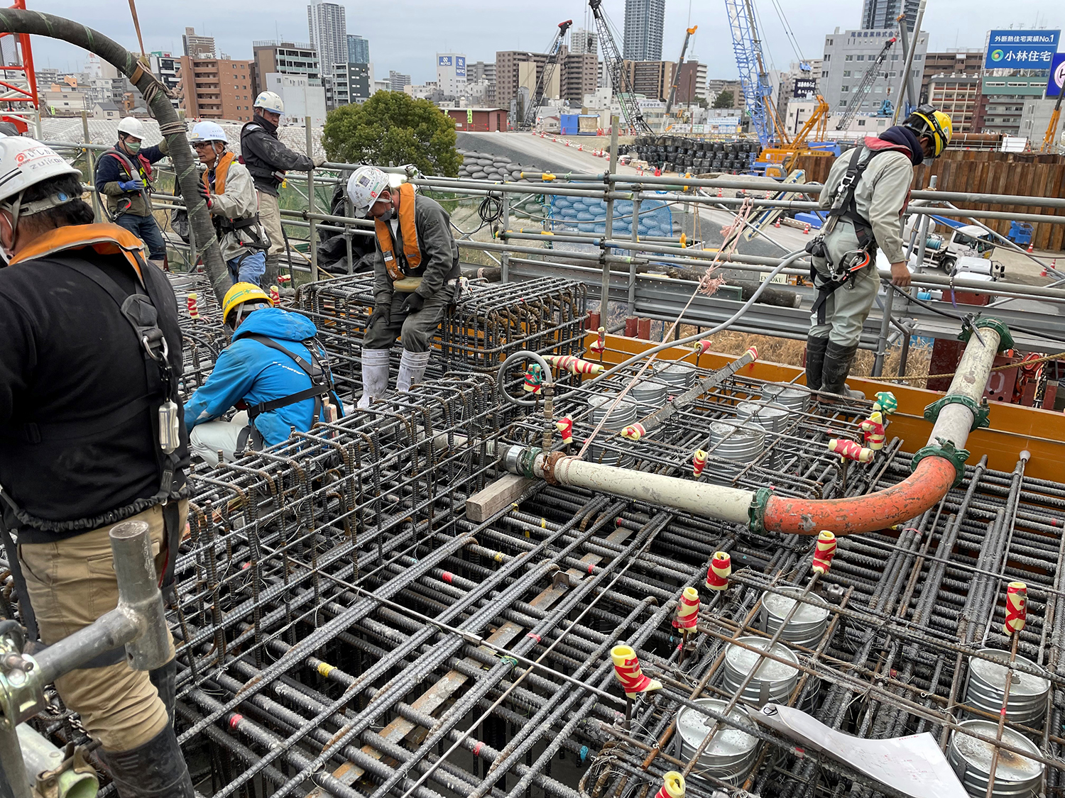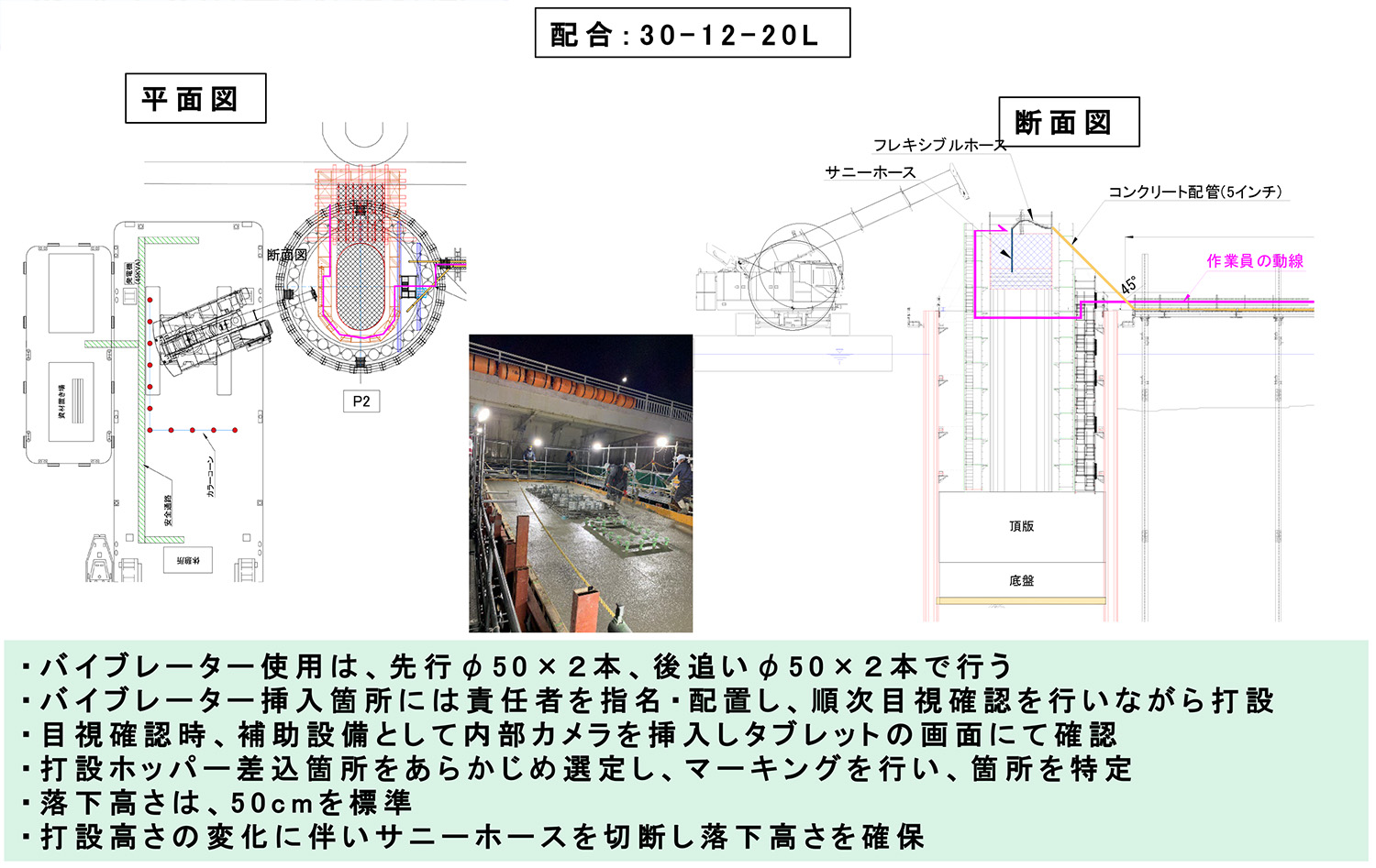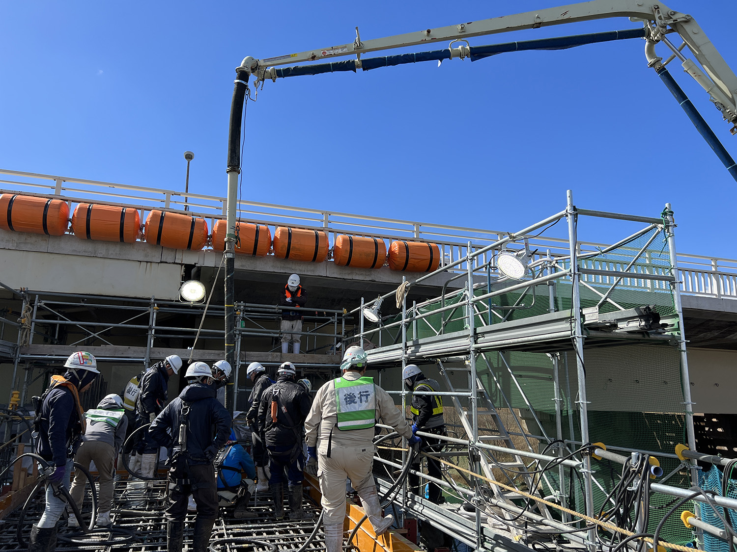打設高は1回当たり50cmを標準、1橋脚辺りの施工人数は20人以上