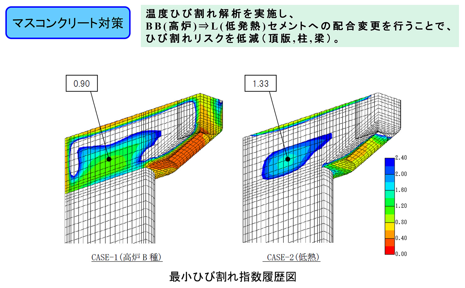 打設回数を4回から3回に減らした/梁部の最小ひび割れ指数履歴図