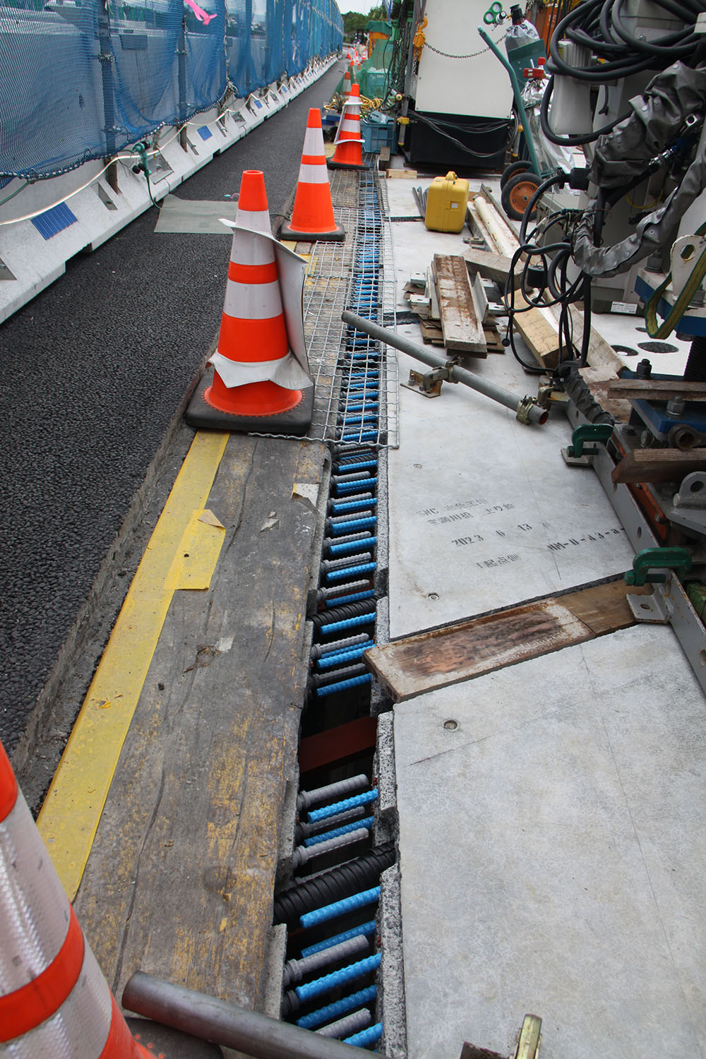 現場は1月から入ったが、まず正月明けからGW前までの期間に上下線の追越し車線、GW明けからお盆前までがセパレート規制により、第二走行車線部、最後に第一走行車線部をお盆明けから11月にかけて施工した。いずれも施工時は3車線を一時的に2車線に規制して施工したが、一番難しいのが、セパレート規制時である。