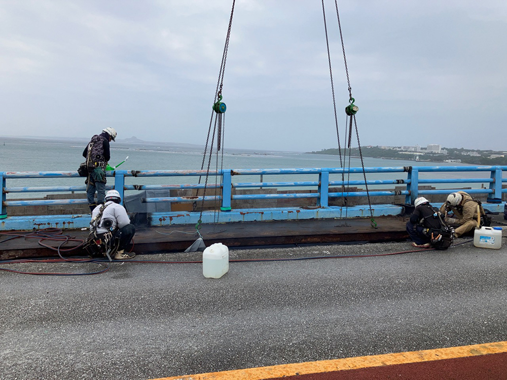 補修工事では現場着手してから追加設計や工事が必要になることがあり、「当初は部分調査による補修設計をもとにマニュアル作成を行い、次径間へ補修方法の適用が可能であれば流用したいと考えていた」(沖縄県)。しかし、「本橋は径間ごとに支間長や部材厚が異なり各径間で作用する応力が変化すること、特に応力が最大となる桁端部および支間中央部は孔食・板厚減少が耐荷力に大きく影響することから、腐食箇所ごとに最適な補修設計を行う必要があると判明した」(同)という。そのため、「今後施工する支間でも詳細調査、再設計が必要と考えられ、工期、費用に大きな影響が生じる」とのことだ。