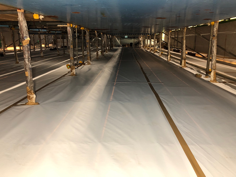 塩害抑制および検査路として桁間にFRP防護板を設置