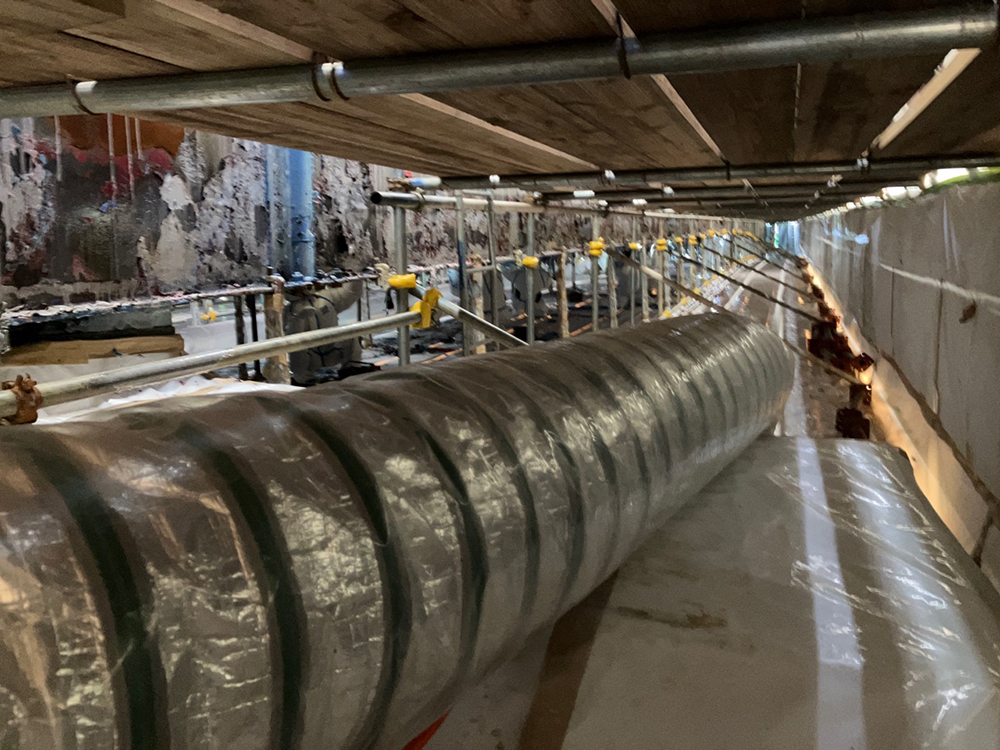 熱中症対策でドライクーラーを設置して足場内に冷風を送る