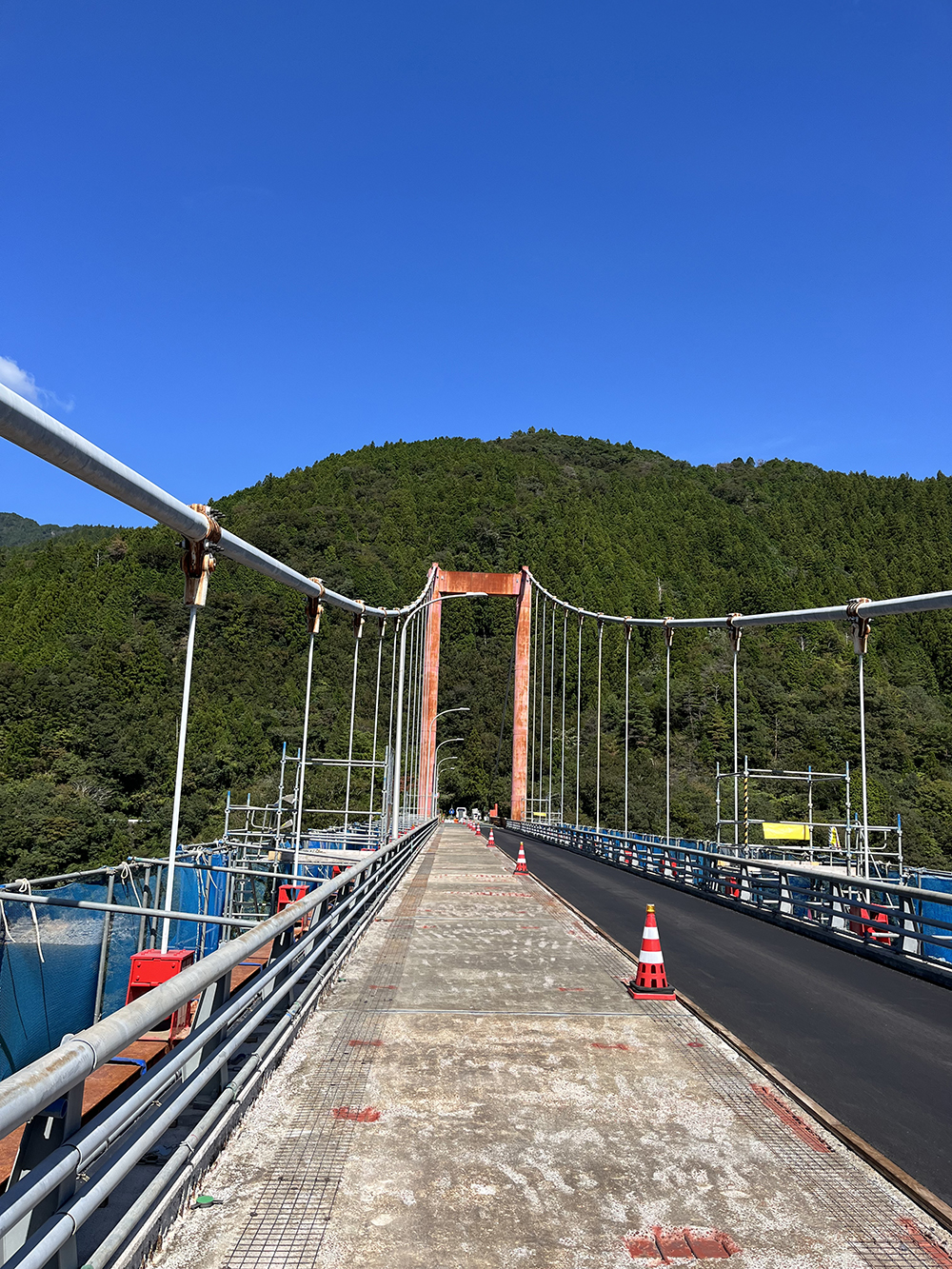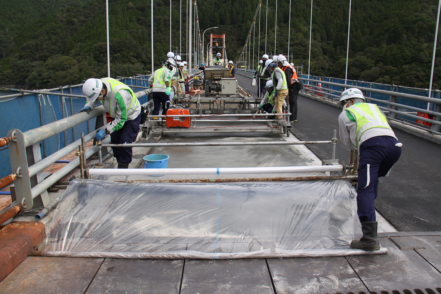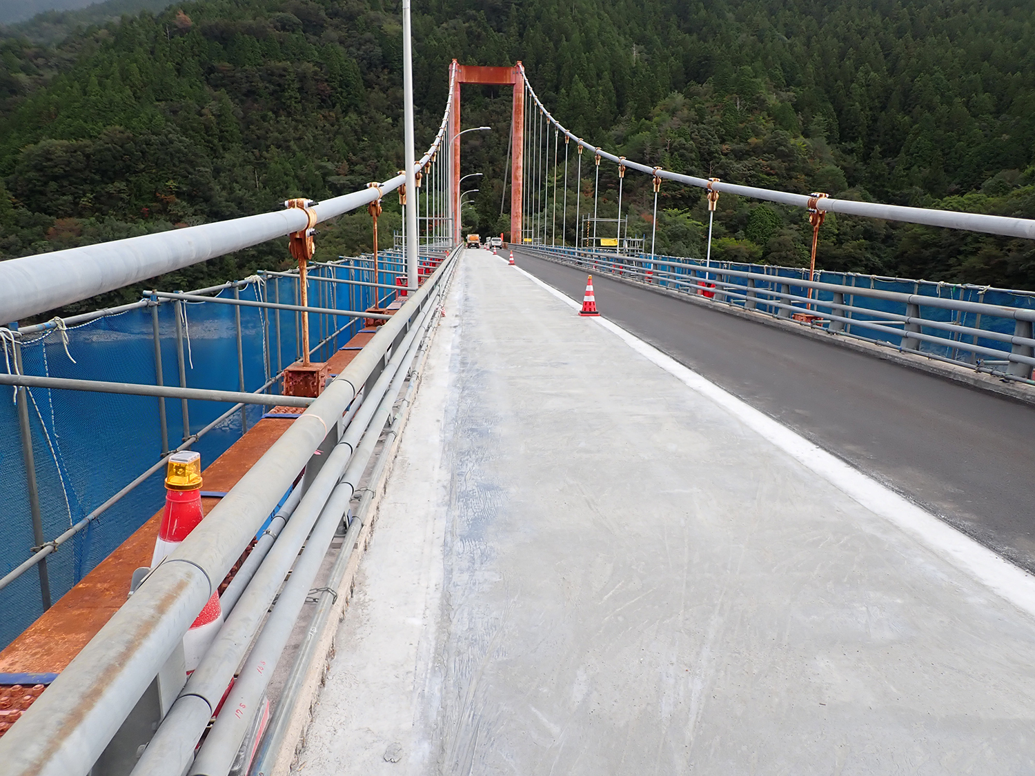 高知県 上吉野川橋吊橋部の床版を『J-Thifcom』で上面補修