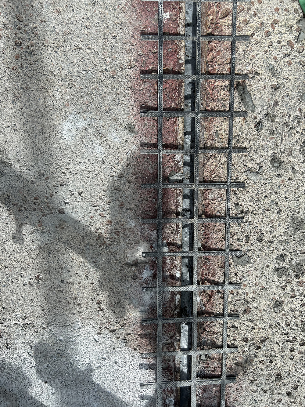 間詰部へのCFRPグリッド配置/間詰部の施工