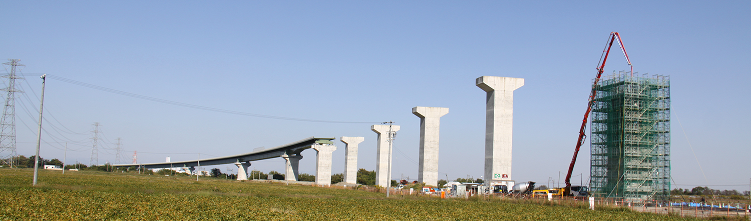 設計は協和設計、中日本建設コンサルタント、開発虎ノ門コンサルタント、八千代エンジニヤリング、大日コンサルタント、エイト日本技術開発、中央コンサルタンツ、オリエンタルコンサルタンツ。下部工元請は大林組、鹿島建設、加藤建設、岐建、杉山建設、三建産業、大成建設、日東工業、西濃建設、佐竹組、TUCHIYA、徳倉建設、大日本土木、矢作建設工業、新井組、りんかい日産建設、清水建設、大有建設、市川工務店、神野産業、若築建設、松野組、久保田工務店など。一次下請はジャパンパイル、菱建基礎など。回転杭工法の鋼管製作はJFEスチール、日本製鉄。