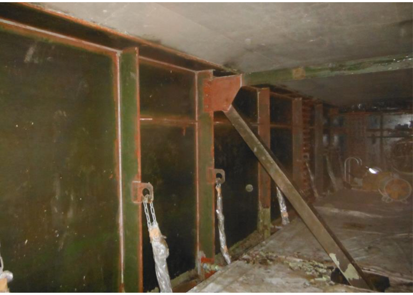 既存塗膜の仕様および膜厚はB系塗装(塩化ゴム系)で、下塗りがエッチングプライマー・シアナミド鉛ペイント2層・フェノール系MIO塗料、中塗りおよび上塗りが塩化ゴム系。平均の総膜厚は250μmだが、添接部および隅角部は500μmを超える個所もあった。塗膜剥離剤は水系の「パントレ」と高級アルコール系の「バイオハクリX」および「ネオリバー泥パック」を使用している。本施工前に試験施工を実施して材料性能を確認しており、「パントレは低温時では剥離性能が他の2工法に若干劣るものの人体への影響や環境負荷が少ないため、比較的作業しやすい環境条件の時に使用した。他の2工法は低温など厳しい箇所で採用している」(阪神高速道路)。